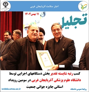 کسب رتبه شایسته تقدیر دانشگاه علوم پزشکی آذربایجان غربی در رویداد استانی جایزه جوانی جمعیت